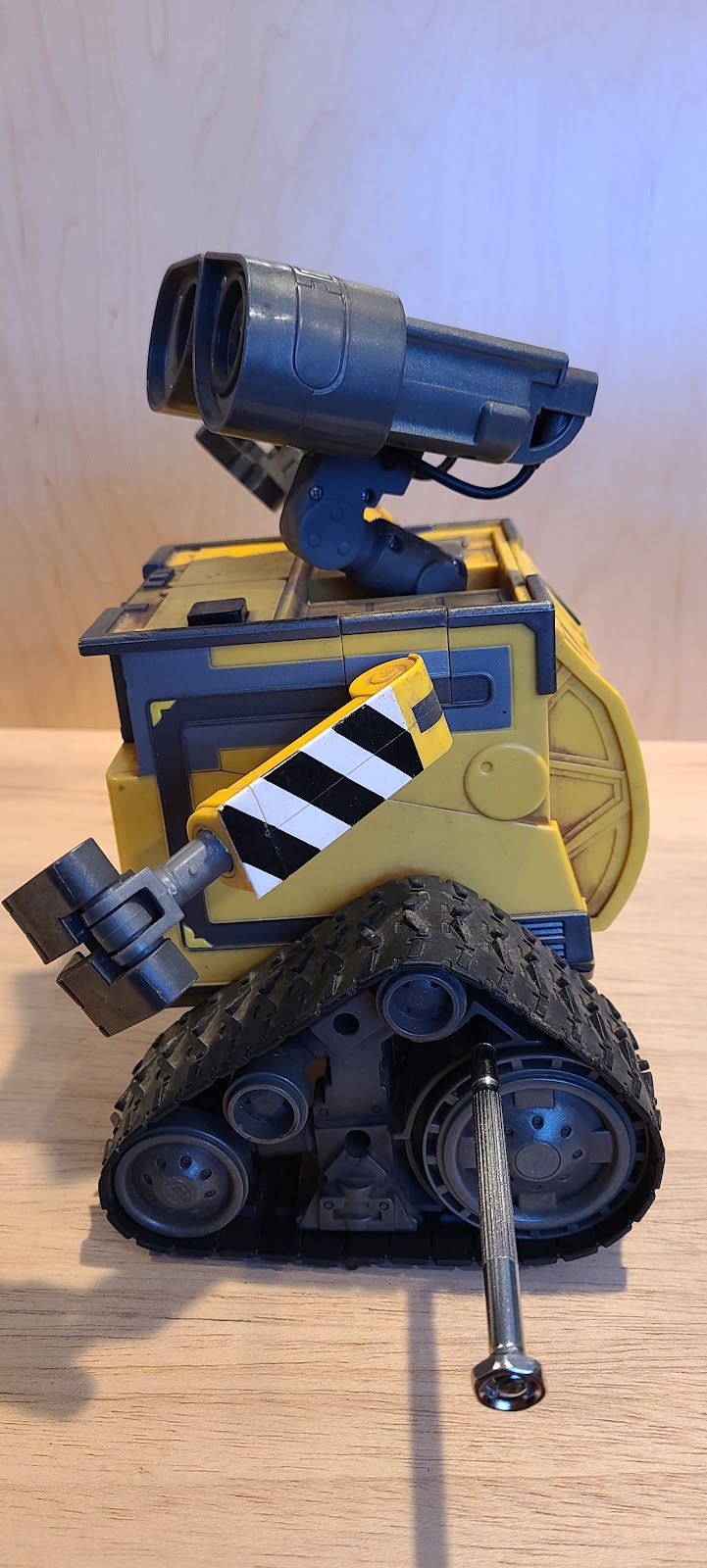 After all that, WALL-E is mostly working again, finally! His right-side tread moves better than the left side.